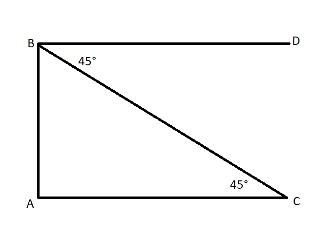 একটি মিনারের শীর্ষবিন্দুতে ঐ বিন্দু থেকে 20 মিটার দূরের ভূতলস্থ একটি বিন্দুর অবনতি কোণ 45° হলে মিনারটির উচ্চতা কত?