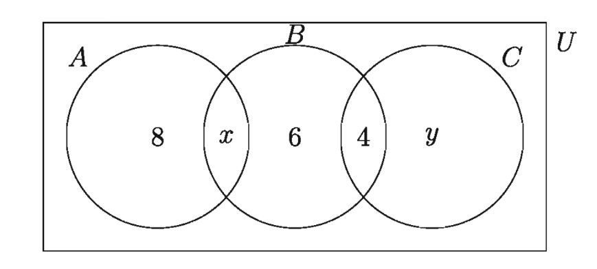 প্রদত্ত ভেনচিত্রে, যদি A ∩ B = B ∩ C হয়, তবে x এর মান কত?